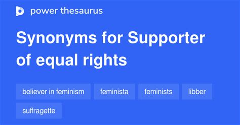 Synonyms For Equal Rights - Need synonyms for equal rights? A situation that offers no. Browse related words to learn more. Synonyms for equal rights (other words and phrases for equal rights). Full list of synonyms for equal.